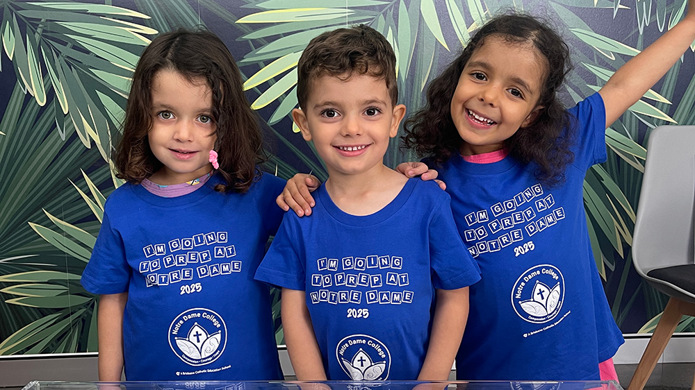 ​In a triple treat for Notre Dame College, Bells Creek, on the Sunshine Coast, four-year-old’s Benji, Lilly, and Chloe have become the first students to be enrolled at Brisbane Catholic Education’s (BCE) newest Prep to Year 12 schoo ...